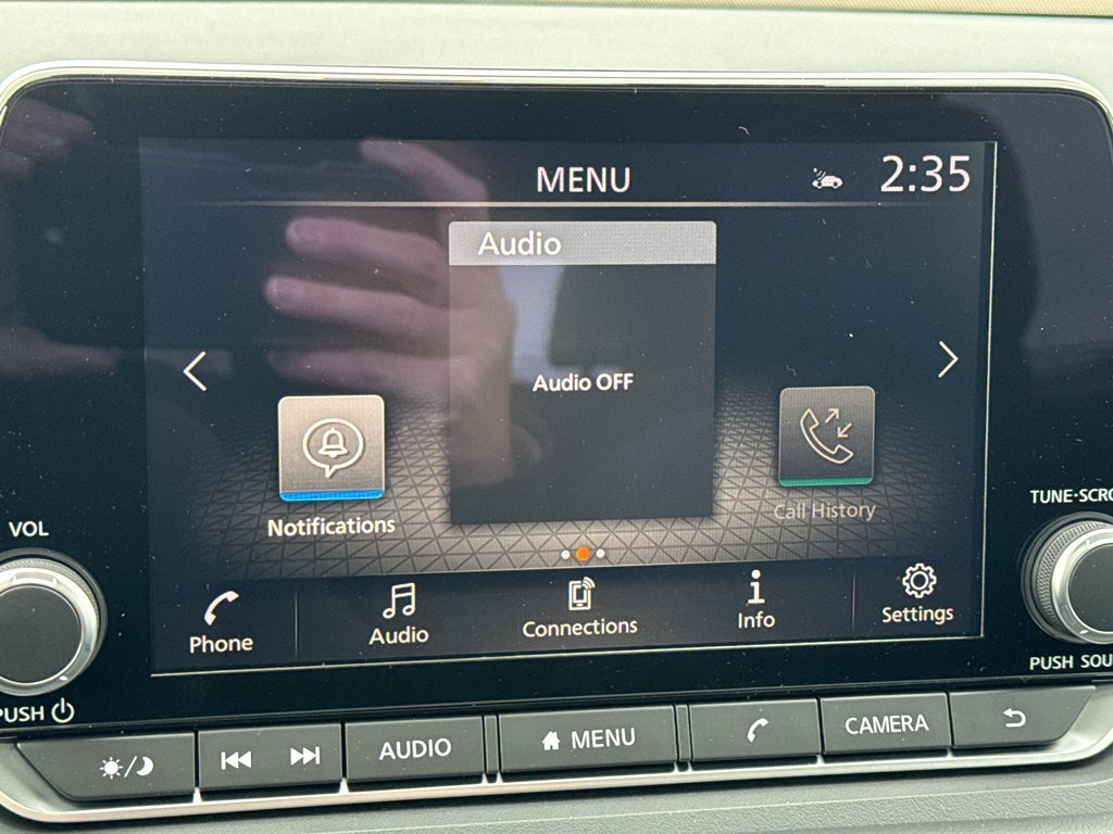 - Radio: AM/FM NissanConnect -inc: 6 speakers plus 2 tweeters, Apple CarPlay, Android Auto, 8" color touch screen display, Bluetooth®, 2 front USB type-C, Wi-Fi hotspot and NissanConnect Services powered by SiriusXM