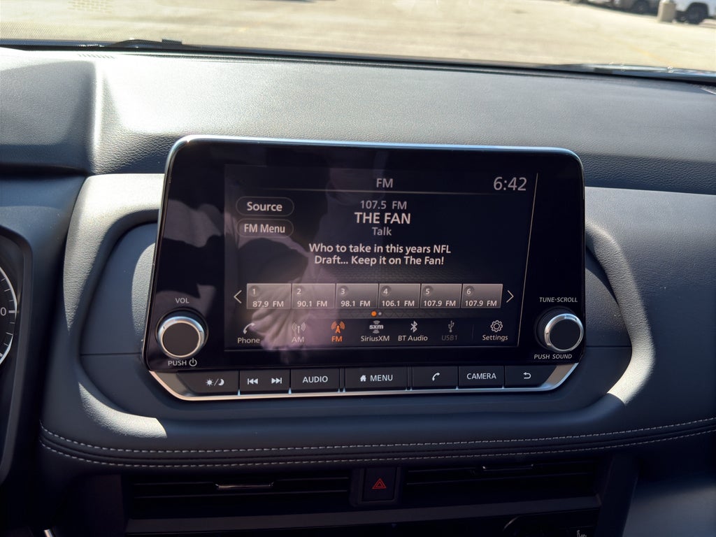 - Radio: AM/FM NissanConnect -inc: 6 speakers plus 2 tweeters, Apple CarPlay, Android Auto, 8" color touch screen display, Bluetooth®, 2 front USB type-C, Wi-Fi hotspot and NissanConnect Services powered by SiriusXM