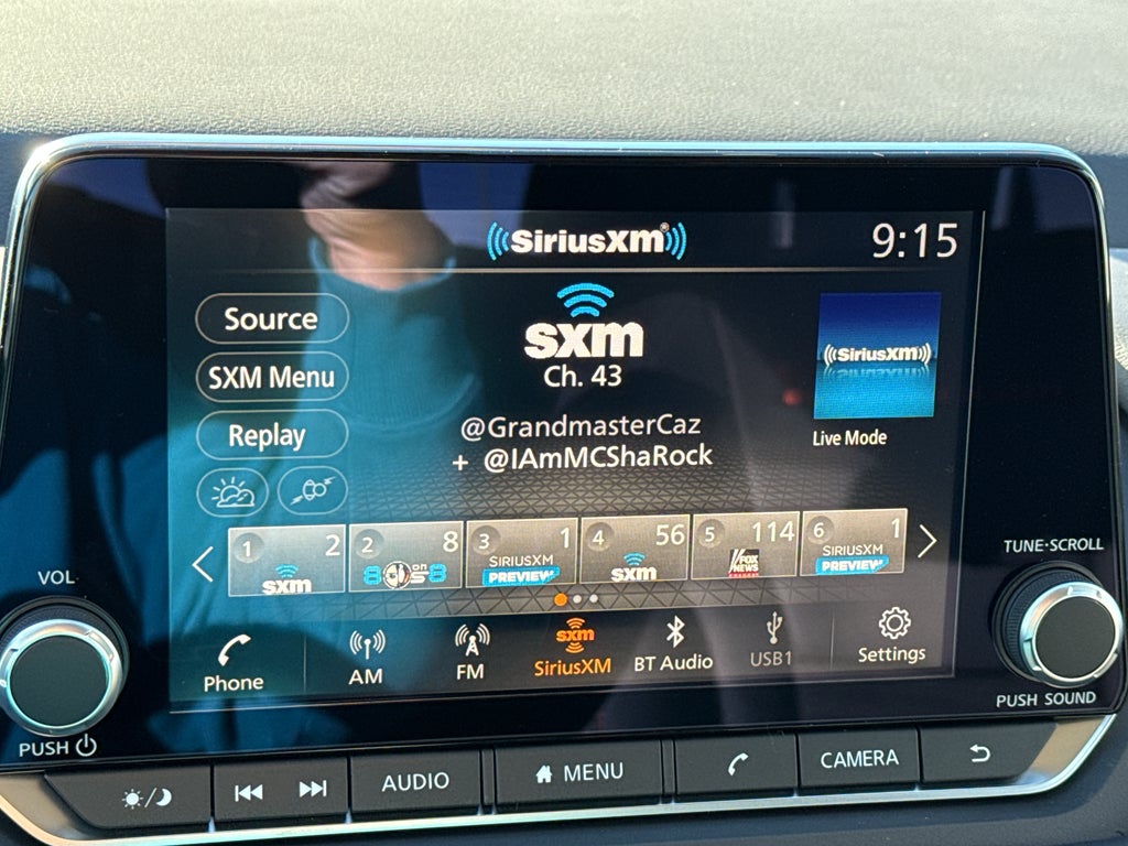- Radio: AM/FM NissanConnect -inc: 6 speakers plus 2 tweeters, Apple CarPlay, Android Auto, 8" color touch screen display, Bluetooth®, 2 front USB type-C, Wi-Fi hotspot and NissanConnect Services powered by SiriusXM