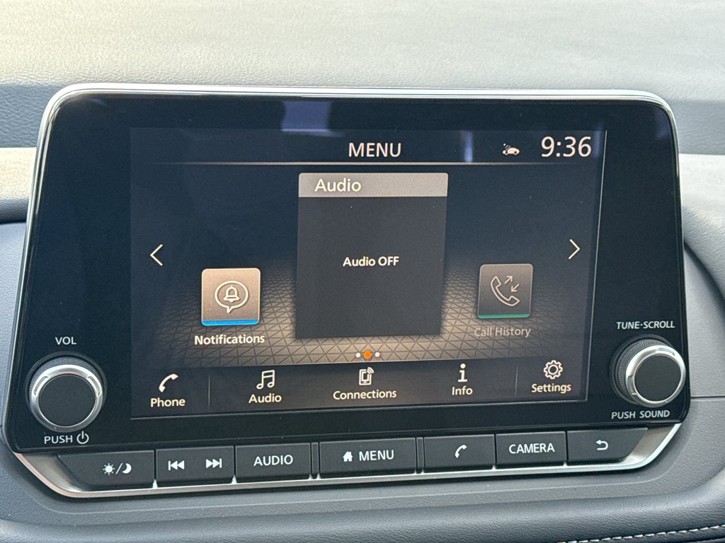 - Radio: AM/FM NissanConnect -inc: 6 speakers plus 2 tweeters, Apple CarPlay, Android Auto, 8" color touch screen display, Bluetooth®, 2 front USB type-C, Wi-Fi hotspot and NissanConnect Services powered by SiriusXM