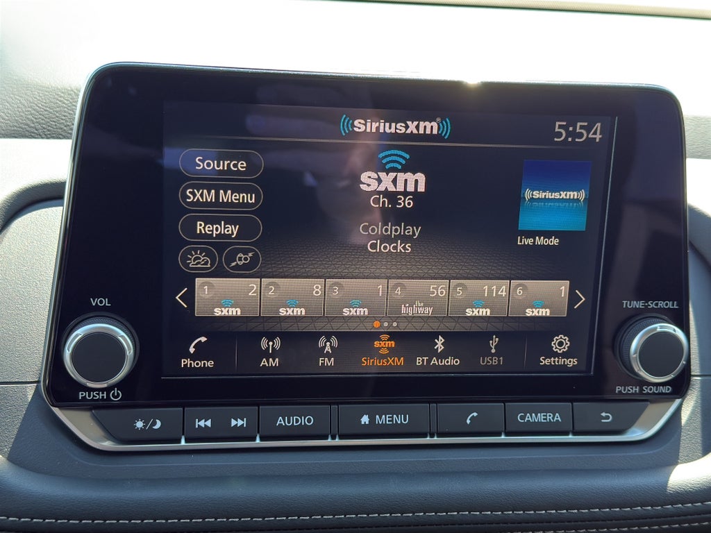 • Radio: AM/FM NissanConnect -inc: 6 speakers plus 2 tweeters, Apple CarPlay, Android Auto, 8" color touch screen display, Bluetooth®, 2 front USB type-C, Wi-Fi hotspot and NissanConnect Services powered by SiriusXM