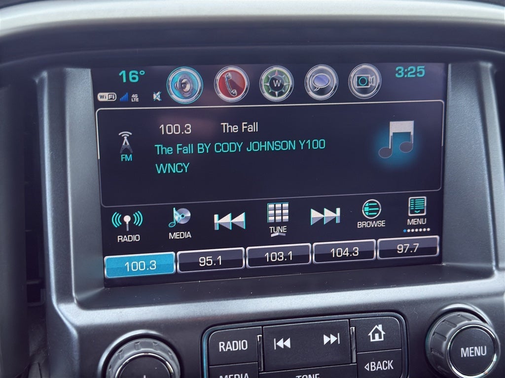 - Audio System, Chevrolet MyLink Radio with 8" diagonal color touch-screen, AM/FM stereo seek-and-scan and digital clock, includes Bluetooth® streaming audio for music and select phones; voice-activated technology for radio and phone; featuring Apple CarPlay capability for compatible phone; includes auxiliary jack