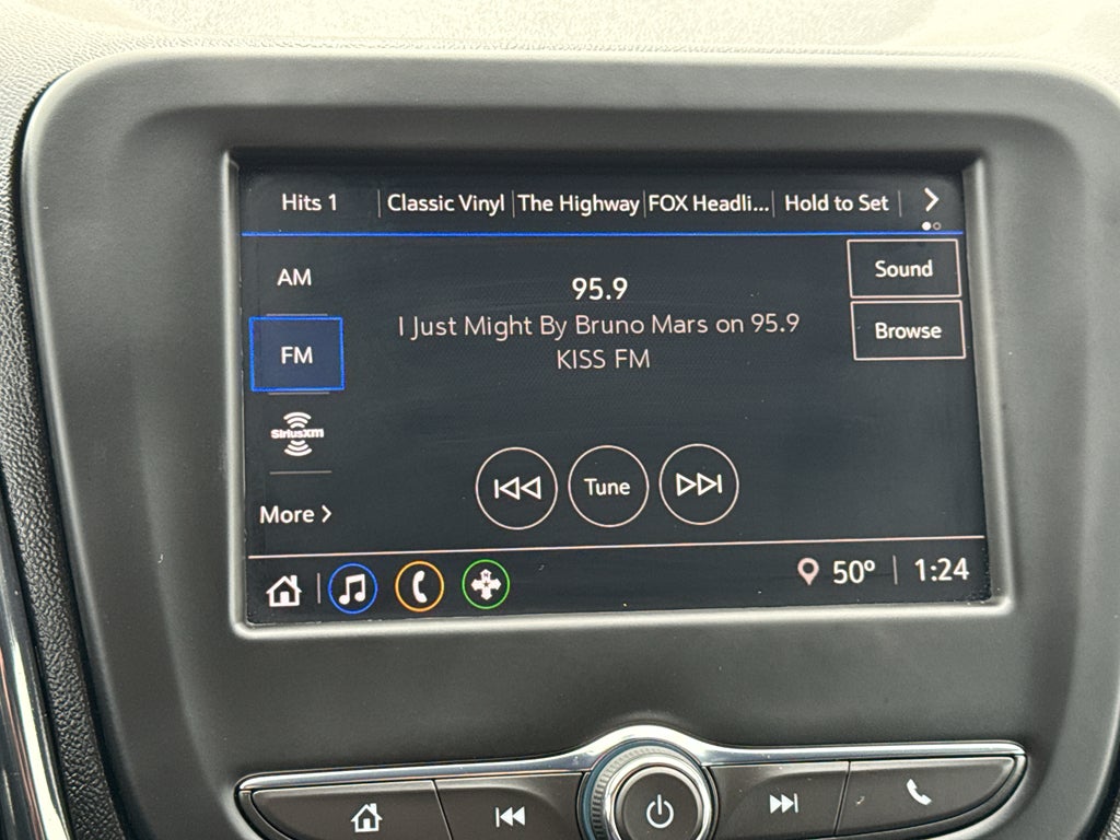 - Audio system, Chevrolet Infotainment 3 system, 7" diagonal color touchscreen, AM/FM stereo. Additional features for compatible phones include: Bluetooth® audio streaming for 2 active devices, voice command pass-through to phone, Apple CarPlay and Android Auto capable.