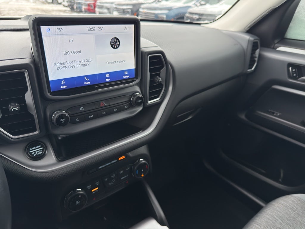 Apple CarPlay: Seamless smartphone integration for it - stay connected and entertained on the go! The Ford Bronco Sport offers Automatic Climate Control for personalized comfort. Good News! This certified CARFAX 1-owner vehicle has only had one owner before you. This vehicle comes equipped with Android Auto for seamless smartphone integration on the road. Our dealership has already run the CARFAX report and it is clean. A clean CARFAX is a great asset for resale value in the future. Protect the Ford Bronco Sport from unwanted accidents with a cutting edge backup camera system. This 2022 Ford Bronco Sport warns of approaching vehicles with Cross-Traffic Alert. Bluetooth® technology is built into this mid-size suv, keeping your hands on the steering wheel and your focus on the road. The state of the art park assist system will guide you easily into any spot. Start this 2022 Ford Bronco Sport from inside with remote start.